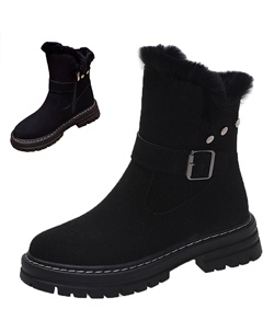 Женские зимние плюшевые утепленные замшевые снежные ботинки с меховой подкладкой, уличные, повседневные, с боковой молнией, противоскользящие, удобные для ходьбы, армейские хлопковые ботильоны, Black