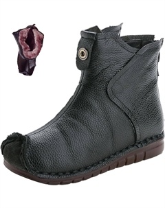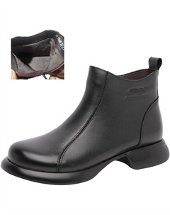 Женские винтажные кожаные водонепроницаемые ботинки на молнии, осенне-зимние комфортные, с нескользящей толстой подошвой, мягкие, под платье, короткие ботильоны, Black+Velvet