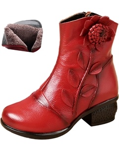 Женские винтажные кожаные водонепроницаемые ботинки на молнии, осенне-зимние комфортные, с нескользящей толстой подошвой, мягкие, под платье, короткие ботильоны, Red Velvet