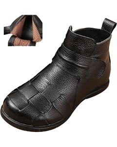 Женские кожаные ботинки с задней молнией и поддержкой голеностопа, винтажные, удобные, с нескользящей платформой, мягкой подошвой, повседневные короткие ботильоны, Black