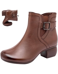 Женские кожаные ботильоны с эластичной вставкой, Осень/Зима, удобный низкий квадратный каблук, молния, пряжка, повседневные и деловые короткие ботинки, Brown