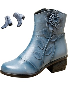 Женские винтажные кожаные водонепроницаемые ботинки на молнии, осенне-зимние комфортные, с нескользящей толстой подошвой, мягкие, под платье, короткие ботильоны, Blue