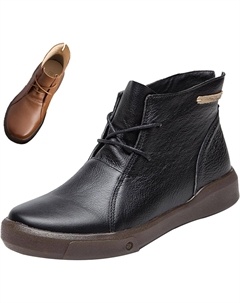 Женские повседневные кожаные ботильоны на шнуровке, кружевные, осень/зима, удобные, водонепроницаемые, нескользящие, плоские, деловые короткие ботинки, Black Velvet