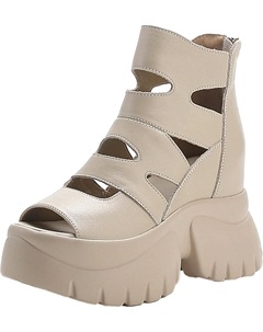 Женские летние ботильоны на платформе из коровьей кожи, удобная массивная подошва, открытый мыс, задняя молния, короткие ботильоны с вырезами, Beige