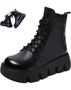 Женские кожаные ботильоны на платформе с толстой подошвой, удобные и водонепроницаемые, с молнией, мотоботинки, короткие, осень/зима, Black Velvet