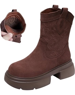 Женские замшевые ботильоны на массивной подошве, винтажные осенне-зимние комфортные короткие сапожки в стиле вестерн, водонепроницаемые, на молнии, Brown