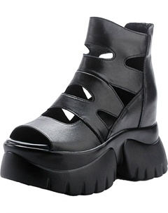Женские летние ботильоны на платформе из коровьей кожи, удобная массивная подошва, открытый мыс, задняя молния, короткие ботильоны с вырезами, Black