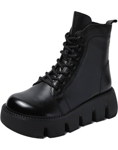 Женские кожаные ботильоны на платформе с толстой подошвой, удобные и водонепроницаемые, с молнией, мотоботинки, короткие, осень/зима, Black