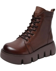 Женские кожаные ботильоны на платформе с толстой подошвой, удобные и водонепроницаемые, с молнией, мотоботинки, короткие, осень/зима, Brown Velvet