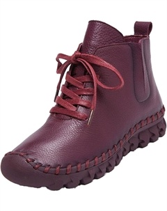Женские ботинки Челси с поддержкой свода стопы из кожи, ручная строчка, высокий каблук, шнуровка, нескользящая мягкая подошва, платье, ботильоны, Wine Red