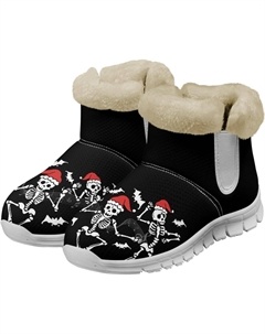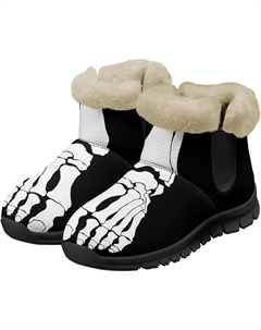 Зимние ботинки для женщин и мужчин, повседневные, для холодной погоды, домашние, теплые, мягкие, с фланелевой подкладкой, зимние ботильоны, Novelty Foot Skeleton Black
