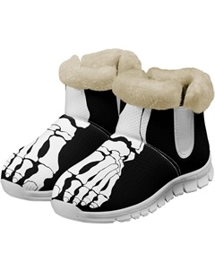 Зимние ботинки для женщин и мужчин, повседневные, для холодной погоды, домашние, теплые, мягкие, с фланелевой подкладкой, зимние ботильоны, Novelty Foot Skeleton White
