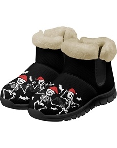 Зимние ботинки для женщин и мужчин, повседневные, для холодной погоды, домашние, теплые, мягкие, с фланелевой подкладкой, зимние ботильоны, Funny Skeleton Black