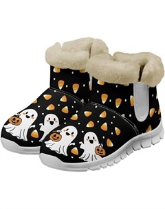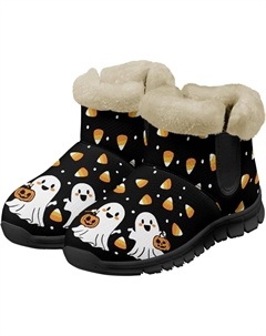 Зимние ботинки для женщин и мужчин, повседневные, для холодной погоды, домашние, теплые, мягкие, с фланелевой подкладкой, зимние ботильоны, Halloween Ghost Pattern White