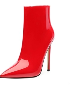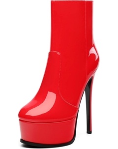 Женские ботильоны на высокой шпильке, круглый носок, лакированные ботинки с боковой молнией, стильные короткие ботинки для вечеринок и выпускного, каблук 15 см, Red