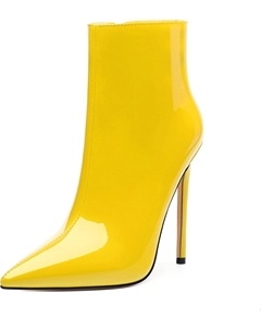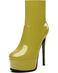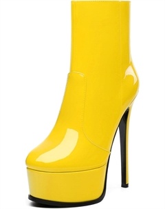 Женские ботильоны на высокой шпильке, круглый носок, лакированные ботинки с боковой молнией, стильные короткие ботинки для вечеринок и выпускного, каблук 15 см, Yellow