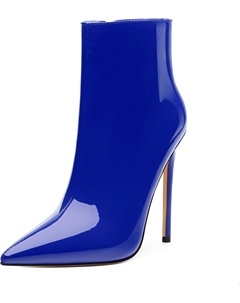 Женские ботильоны на высокой шпильке, круглый носок, лакированные ботинки с боковой молнией, стильные короткие ботинки для вечеринок и выпускного, каблук 15 см, Royal Blue