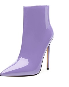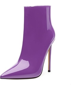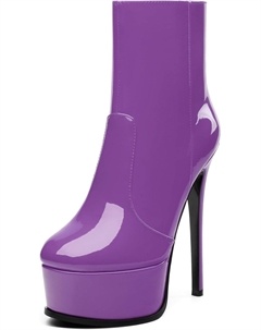 Женские ботильоны на высокой шпильке, круглый носок, лакированные ботинки с боковой молнией, стильные короткие ботинки для вечеринок и выпускного, каблук 15 см, Purple