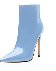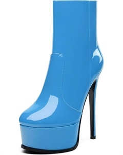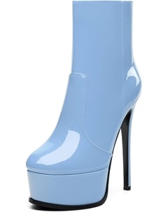 Женские ботильоны на высокой шпильке, круглый носок, лакированные ботинки с боковой молнией, стильные короткие ботинки для вечеринок и выпускного, каблук 15 см, Sky Blue