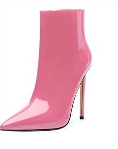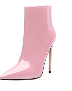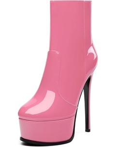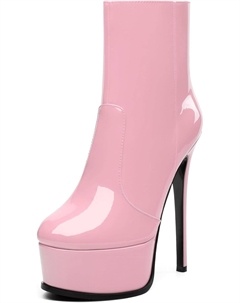 Женские ботильоны на высокой шпильке, круглый носок, лакированные ботинки с боковой молнией, стильные короткие ботинки для вечеринок и выпускного, каблук 15 см, Pink