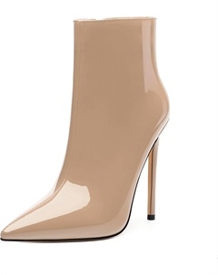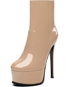 Женские ботильоны на высокой шпильке, круглый носок, лакированные ботинки с боковой молнией, стильные короткие ботинки для вечеринок и выпускного, каблук 15 см, Nude