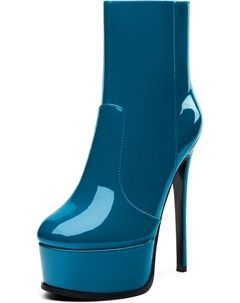 Женские ботильоны на высокой шпильке, круглый носок, лакированные ботинки с боковой молнией, стильные короткие ботинки для вечеринок и выпускного, каблук 15 см, Lake Blue
