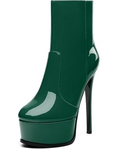 Женские ботильоны на высокой шпильке, круглый носок, лакированные ботинки с боковой молнией, стильные короткие ботинки для вечеринок и выпускного, каблук 15 см, Dark Green