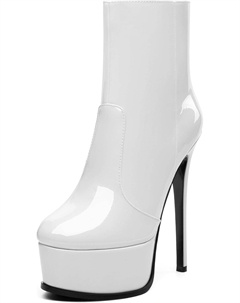 Женские ботильоны на высокой шпильке, круглый носок, лакированные ботинки с боковой молнией, стильные короткие ботинки для вечеринок и выпускного, каблук 15 см, White