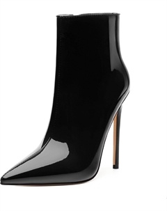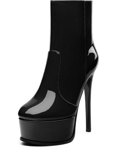 Женские ботильоны на высокой шпильке, круглый носок, лакированные ботинки с боковой молнией, стильные короткие ботинки для вечеринок и выпускного, каблук 15 см, Black