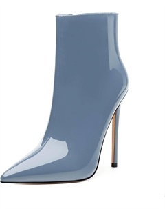 Женские ботильоны на высокой шпильке, круглый носок, лакированные ботинки с боковой молнией, стильные короткие ботинки для вечеринок и выпускного, каблук 15 см, Light Blue