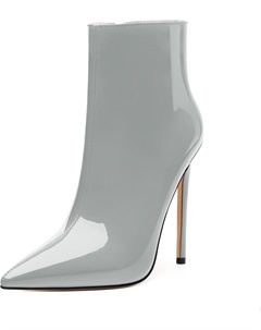 Женские ботильоны на высокой шпильке, круглый носок, лакированные ботинки с боковой молнией, стильные короткие ботинки для вечеринок и выпускного, каблук 15 см, Grey