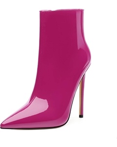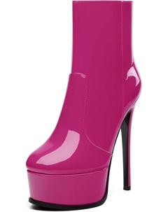 Женские ботильоны на высокой шпильке, круглый носок, лакированные ботинки с боковой молнией, стильные короткие ботинки для вечеринок и выпускного, каблук 15 см, Magenta