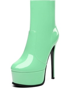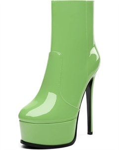 Женские ботильоны на высокой шпильке, круглый носок, лакированные ботинки с боковой молнией, стильные короткие ботинки для вечеринок и выпускного, каблук 15 см, Lime Green