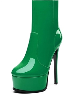 Женские ботильоны на высокой шпильке, круглый носок, лакированные ботинки с боковой молнией, стильные короткие ботинки для вечеринок и выпускного, каблук 15 см, Green