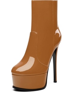 Женские ботильоны на высокой шпильке, круглый носок, лакированные ботинки с боковой молнией, стильные короткие ботинки для вечеринок и выпускного, каблук 15 см, Brown