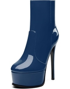 Женские ботильоны на высокой шпильке, круглый носок, лакированные ботинки с боковой молнией, стильные короткие ботинки для вечеринок и выпускного, каблук 15 см, Midnight Blue