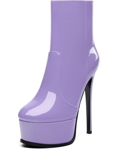 Женские ботильоны на высокой шпильке, круглый носок, лакированные ботинки с боковой молнией, стильные короткие ботинки для вечеринок и выпускного, каблук 15 см, Lavender