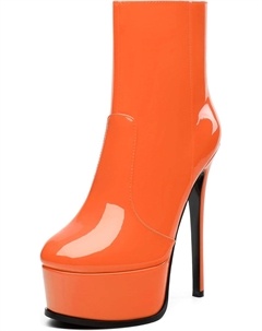 Женские ботильоны на высокой шпильке, круглый носок, лакированные ботинки с боковой молнией, стильные короткие ботинки для вечеринок и выпускного, каблук 15 см, Orange