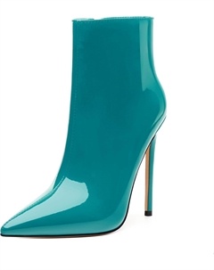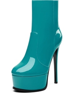 Женские ботильоны на высокой шпильке, круглый носок, лакированные ботинки с боковой молнией, стильные короткие ботинки для вечеринок и выпускного, каблук 15 см, Turquoise