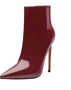 Женские ботильоны на высокой шпильке, круглый носок, лакированные ботинки с боковой молнией, стильные короткие ботинки для вечеринок и выпускного, каблук 15 см, Burgundy