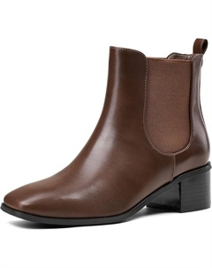 Женские ботинки челси, ботильоны на низком каблуке с квадратным носком, зимние и осенние, для платья, слипоны челси, модные, удобные рабочие и повседневные ботинки, Brown
