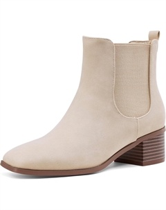 Женские ботинки челси, ботильоны на низком каблуке с квадратным носком, зимние и осенние, для платья, слипоны челси, модные, удобные рабочие и повседневные ботинки, Beige