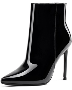 Женские ботильоны с острым носком, высокие каблуки 10 см, молния, стойки-кубита, осенние ботинки, Patent Black