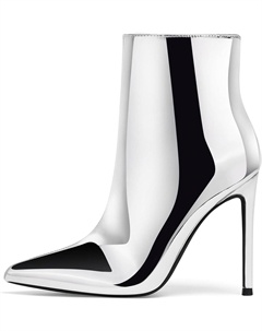 Женские ботильоны с острым носком, высокие каблуки 10 см, молния, стойки-кубита, осенние ботинки, Metallic Silver