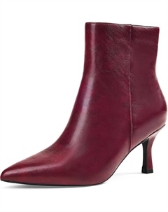 Женские ботильоны с заостренным носком, невысоким каблуком 2,75 дюйма, на осень и зиму, с боковой молнией для работы, вечеринок или повседневной элегантности, 7Cm Wine Red