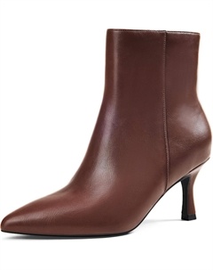 Женские ботильоны с заостренным носком, невысоким каблуком 2,75 дюйма, на осень и зиму, с боковой молнией для работы, вечеринок или повседневной элегантности, 5Cm Reddish Brown