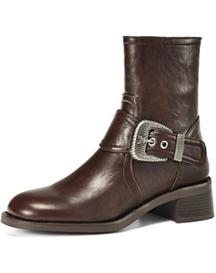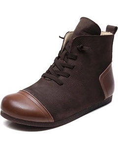 Женские кожаные двухцветные ботинки на плоской подошве, слипоны до щиколотки, ретро, с круглым носком, в этническом стиле, босоногие, с нескользящей мягкой подошвой, свободные ботильоны, Dark Brown