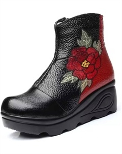 Женские ботильоны на платформе с вышивкой цветов из натуральной кожи, с боковой молнией, удобной стелькой из пены с эффектом памяти, мягкой подошвой, противоскользящие, в национальном стиле, для улицы