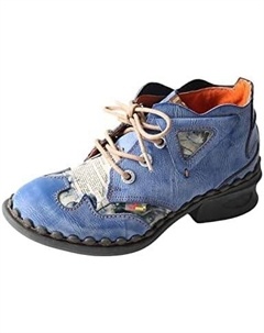 7 892 ₽ Tma eyes Женские кожаные ботильоны с принтом и заплатками, шнуровкой и модным дизайном, Blue Цвет: Синий