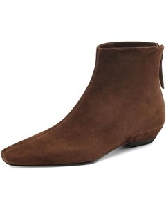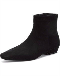 Женские черные замшевые ботильоны с квадратным носком на низком каблуке, легкая мягкая подошва, задняя молния, модные плоские ботинки